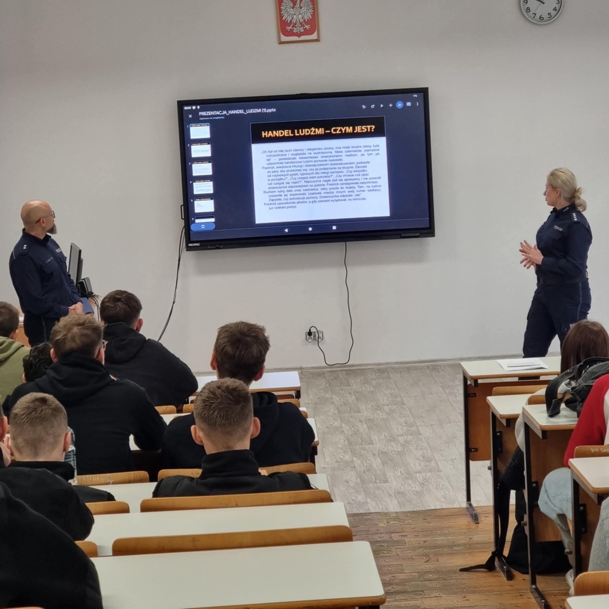 18 października obchodzony był Europejski Dzień Przeciwko Handlowi Ludźmi. Policjanci spotkali się z uczniami, aby zwrócić ich uwagę na problem, który wciąż dotyka wielu osób na całym świecie. Handel ludźmi jest jednym z najpoważniejszych naruszeń praw człowieka i stanowi współczesną formę niewolnictwa.