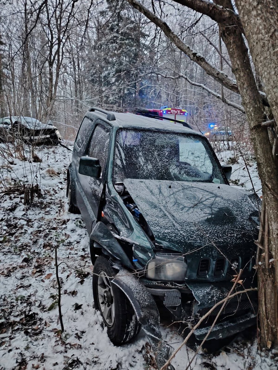 Kolejne zdarzenie miało miejsce w miejscowości Kwaszenina, gdzie doszło do zderzenia dwóch pojazdów, suzuki i audi. Na miejscu interweniowali policjanci ruchu drogowego. Ze wstępnych ustaleń wynika, że kierujący suzuki nie dostosował prędkości do panujących warunków ruchu, zjechał na przeciwległy pas i zderzył się z pojazdem audi. Na szczęście w tym zdarzeniu żadna z osób nie odniosła poważniejszych obrażeń.