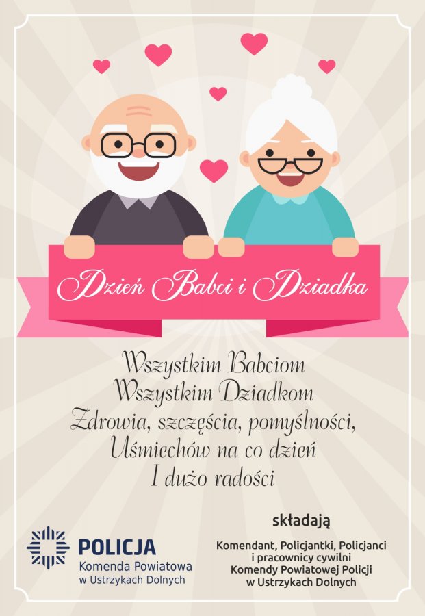 Z okazji Dnia Babci i Dziadka ustrzyccy policjanci składają wszystkim babciom i dziadkom życzenia pomyślności w życiu, zdrowia i uśmiechu na co dzień. Wykorzystajmy tę okazję, aby przypomnieć naszym bliskim podstawowe zasady bezpieczeństwa.