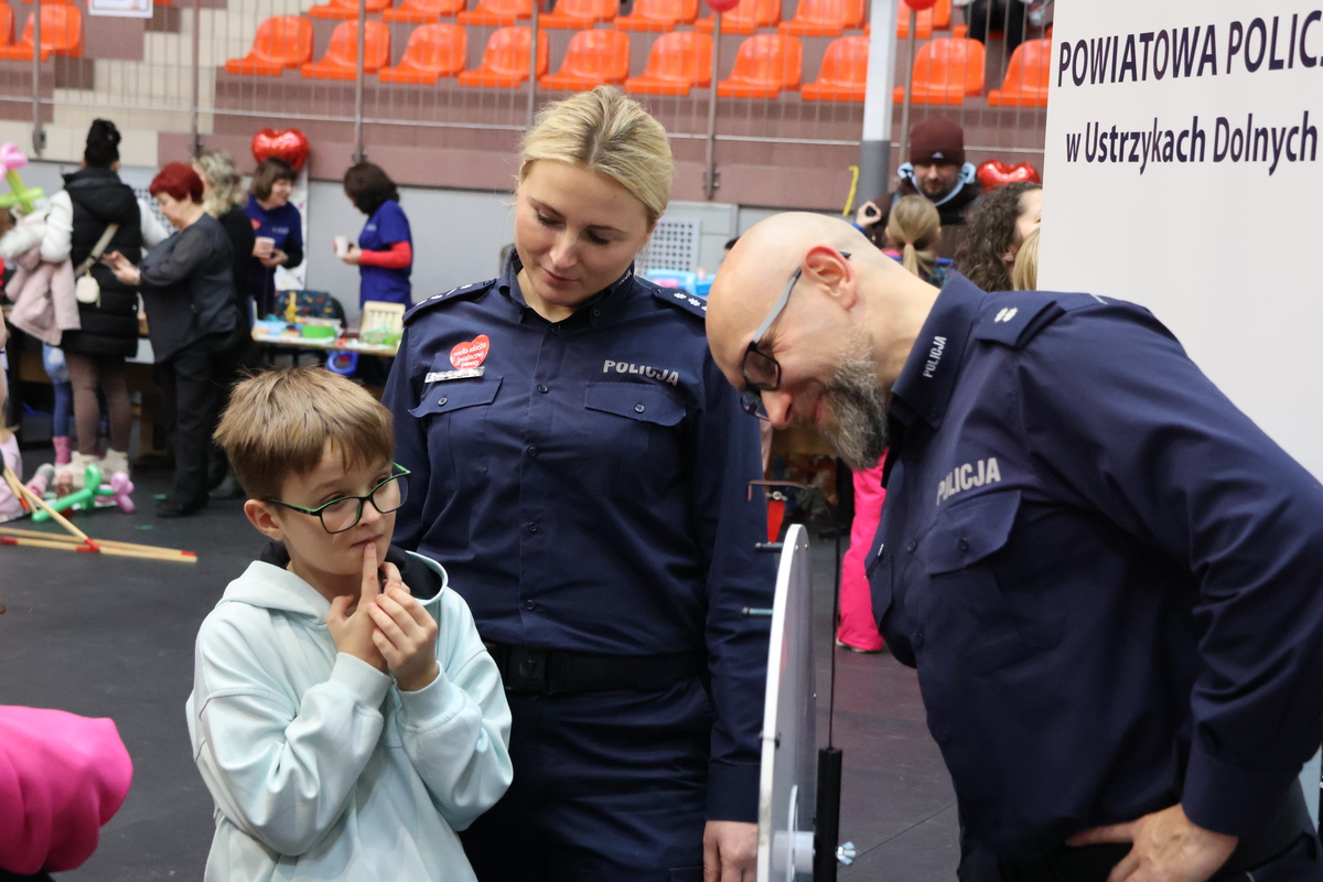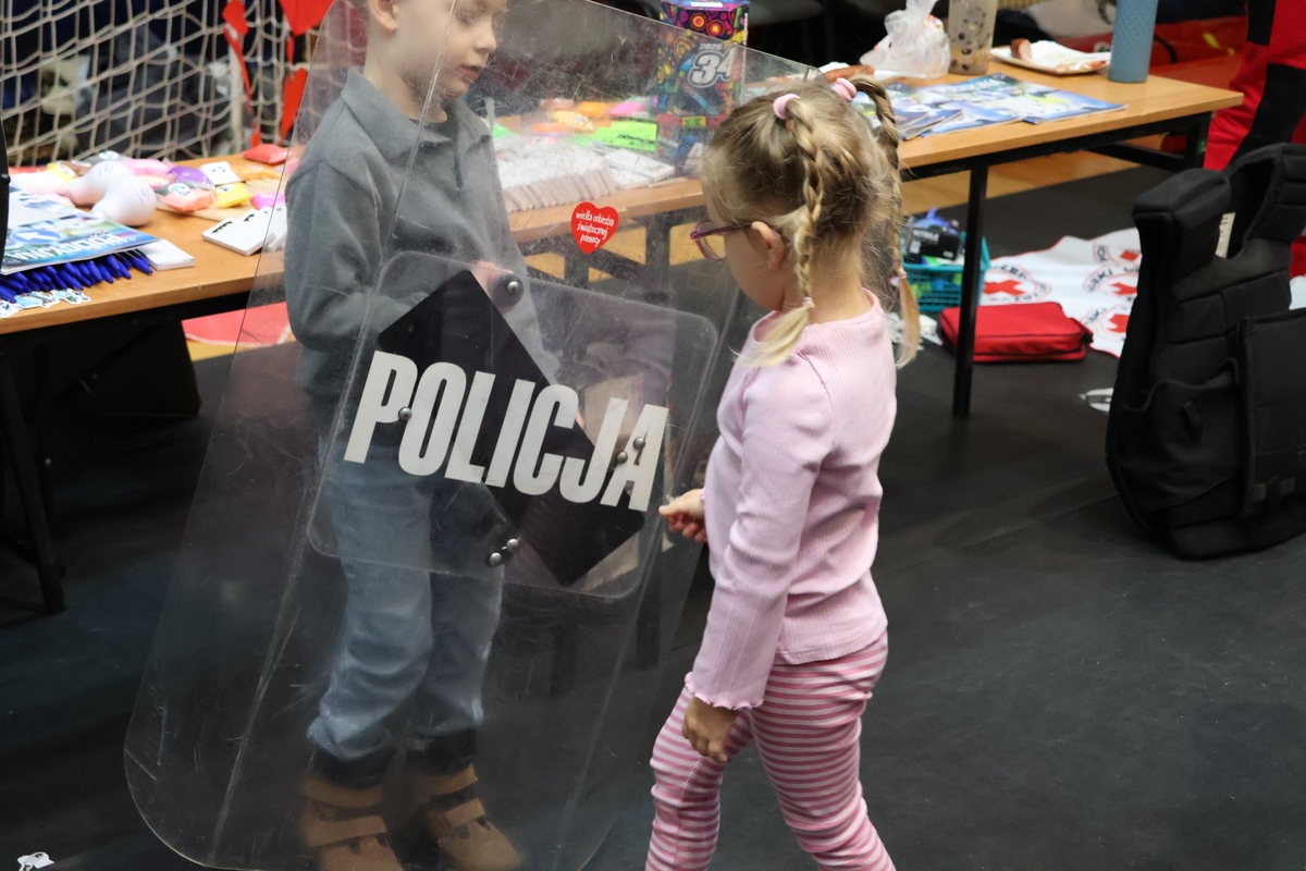 Szczególną uwagę przyciągało policyjne stoisko profilaktyczne zlokalizowane na hali, które stało się miejscem spotkań, rozmów i edukacji. Funkcjonariusze w przystępny i angażujący sposób rozmawiali z dziećmi, młodzieżą oraz dorosłymi o zasadach bezpieczeństwa, odpowiedzialnych zachowaniach oraz reagowaniu w sytuacjach zagrożenia. Najmłodsi chętnie poznawali tajniki policyjnej służby, oglądali elementy wyposażenia i brali udział w przygotowanych atrakcjach edukacyjnych.