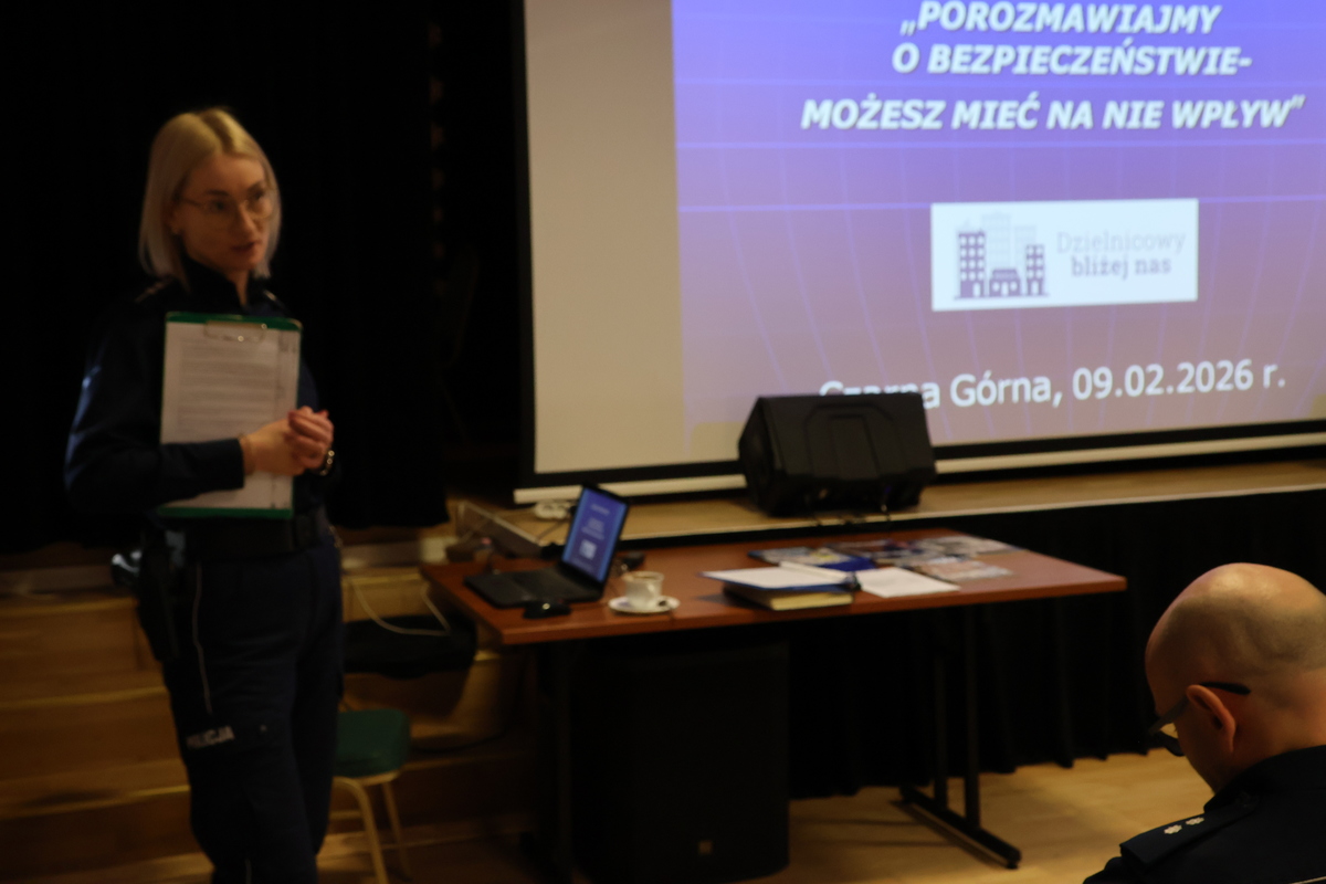 Policjanci omówili zagadnienia dotyczące bezpieczeństwa w ruchu drogowym, założenia programu „Dzielnicowy bliżej nas”, funkcjonowanie „Krajowej Mapy Zagrożeń Bezpieczeństwa” oraz metody działania oszustów. Następnie uczestnicy w dyskusji mogli przekazać swoje spostrzeżenia na temat bezpieczeństwa na terenie gminy Czarna.