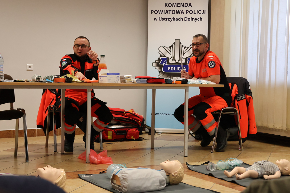 We wtorek ratownicy medyczni z Bieszczadzkiego Pogotowia Ratunkowego przeprowadzili szkolenie w zakresie pierwszej pomocy, w którym udział brali policjanci Komendy Powiatowej Policji w Ustrzykach Dolnych.