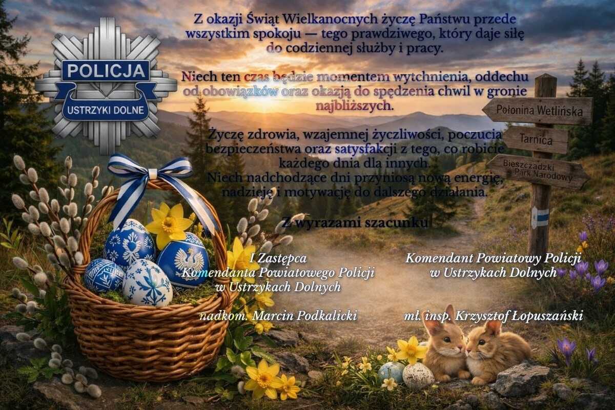 Życzenia Wielkanocne od Kierownictwa Komendy Powiatowej Policji w Ustrzykach Dolnych